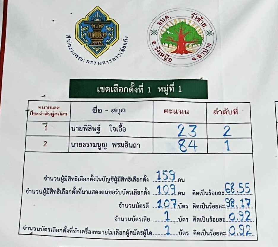 วัน อาทิตย์ ที่ 11 มกราคม 2569 ประกาศผลการนับคะแนนการเลือกตั้ง นายกองค์การบริหารส่วนตำบลวังซ้าย และ สมาชิกสภาองค์การบริหารส่วนตำบลวังซ้าย อย่างไม่เป็นทางการ ณ องค์การบริหารส่วนตำบลวังซ้าย